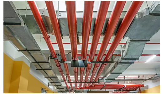 山東消防噴淋系統(tǒng)增加100mm寬的黃色色環(huán),方便與消火栓系統(tǒng)區(qū)分。