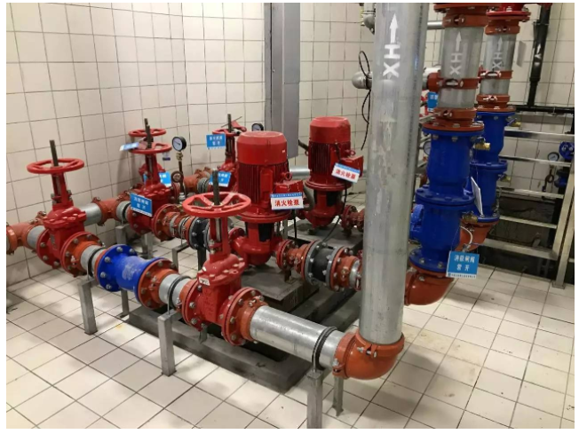 在消防管道轉(zhuǎn)彎處,三通處安裝支吊架,位置準(zhǔn)確合理。